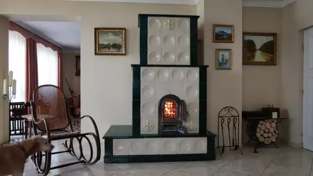 A ház fűtése automatizált gáz központi fűtés padlófűtéssel kombinált radiátoros fűtés, melegvíz hőhordozó közeggel. A fűtés variálható. Működtethető csak padlófűtéssel, csak radiátoros fűtéssel és a kettő kombinációjával. A fűtés 2 szobánként van vezérelve, tehát 2 szobát lehet külön elzárni vagy bekapcsolni a fűtésbe. A ház 2 db ikerkéménnyel rendelkezik. Ebből az egyik samott béléssel ellátott Schiedel kémény, a másik hagyományosan falazott tartalék kémény.