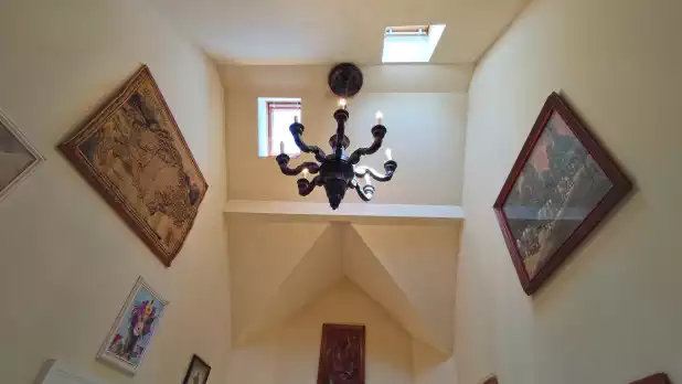 A képeken a lépcsőház és a felső szinti közlekedő látszik