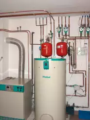 A képeken a hőközpont (Vaillant bojler gázkazán), a kamra és a szauna látszik