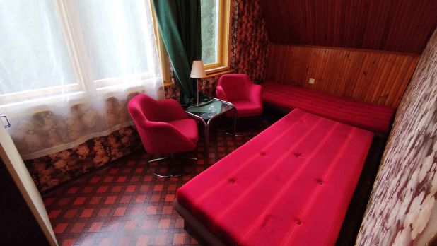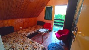 A nyaraló hangulatos belsővel rendelkezik, használható így, ahogy van, minden működik benne és 8 - 10 fő egyidejű elhelyezését tudja biztosítani. A kandallón túl, a helyiségeket villany fűtő készülékekkel lehet fűteni.